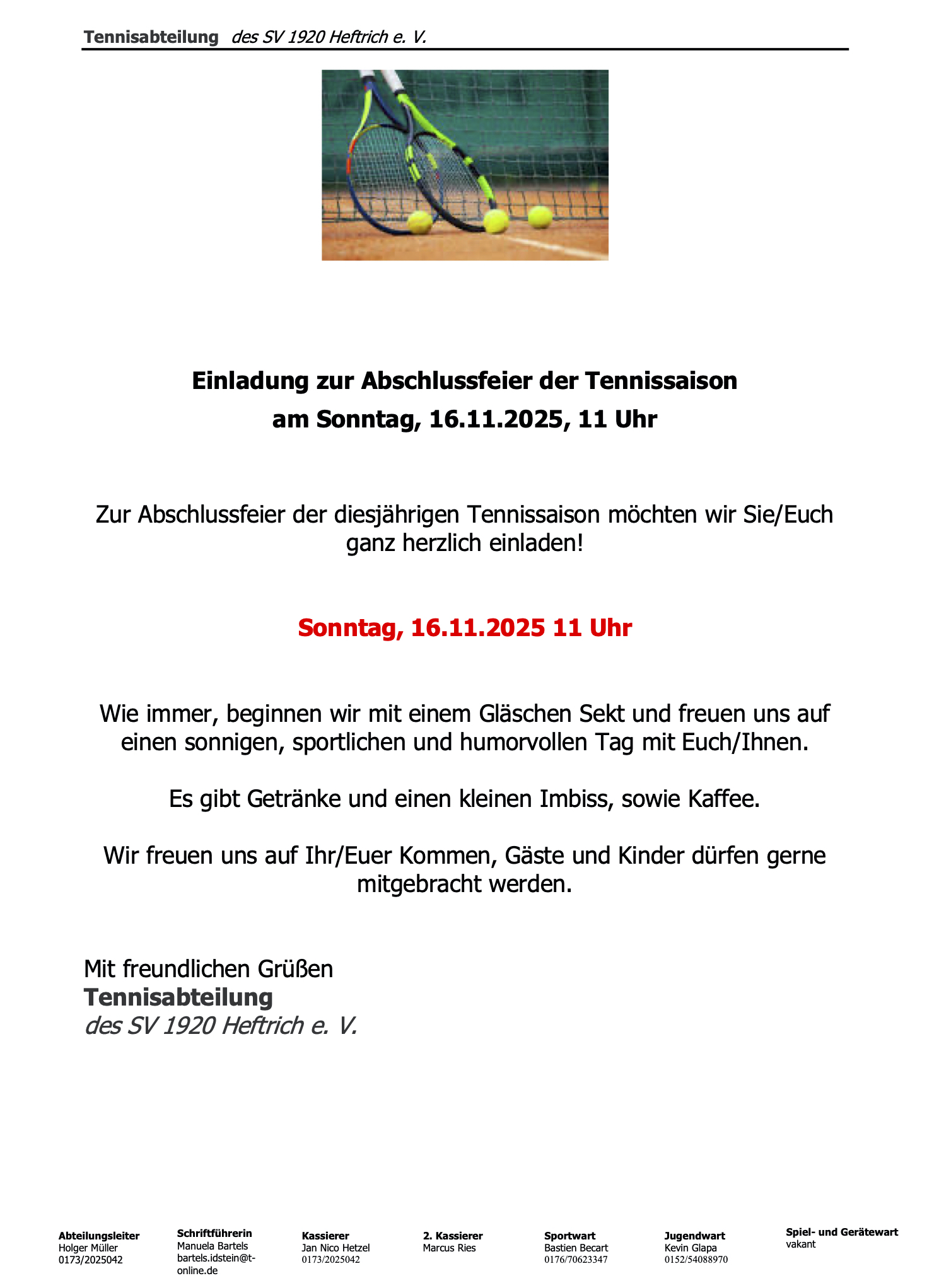 Abschlussfeier der Tennissaison