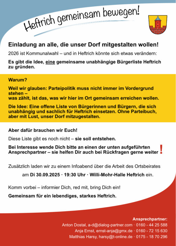 Heftrich ist ein Stadtteil von Idstein (15742 Einwohner). Nach Wörsdorf ist Heftrich mit 1445 Einwohnern (Stand: Juni 2017) der zweitgrößte der elf Idsteiner Stadtteile.